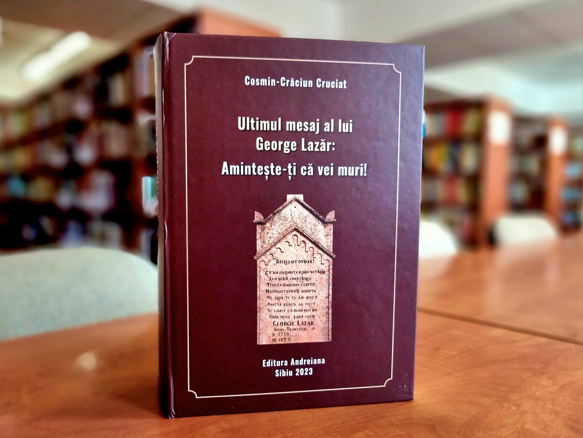 Biblioteca Județeană ASTRA Sibiu, instituție ale cărei acțiuni sunt posibile cu susținere financiară din partea Consiliului Județean Sibiu, invită publicul larg la prezentarea volumului „Ultimul mesaj al lui George Lazăr: Amintește-ți că vei muri!” semnat de Cosmin-Crăciun Cruciat. Evenimentul va avea loc în Foaierul bibliotecii publice sibiene, în 26 martie 2024, la ora 17:00. Autorului i se vor alătura conf. univ. dr. Valeria Soroștineanu, d-na Maria Grancea, custode al Muzeului Orășenesc Avrig, pr. lect. univ. dr. Emanuel Tăvală și dr. Răzvan Pop, manager al Bibliotecii ASTRA Sibiu.
