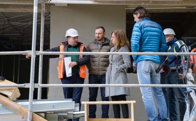 Până în acest moment au fost realizate lucrările la suprastructură, au fost finalizate și s-au executat lucrările exterioare: termosistem, placări cu piatră naturală etc. La interior s-au realizat compartimentările și se lucrează la pereți, izolații, tencuieli, instalații.