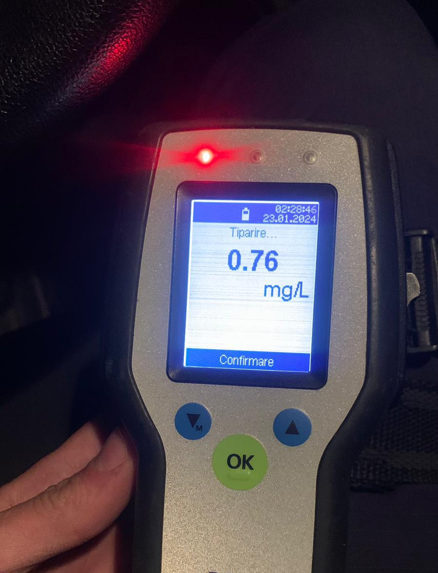 Întrucât bărbatul prezenta halenă alcoolică, polițiștii l-au testat cu aparatul etilotest, care a indicat un rezultat de  0,76 mg/l alcool pur în aerul respirat.