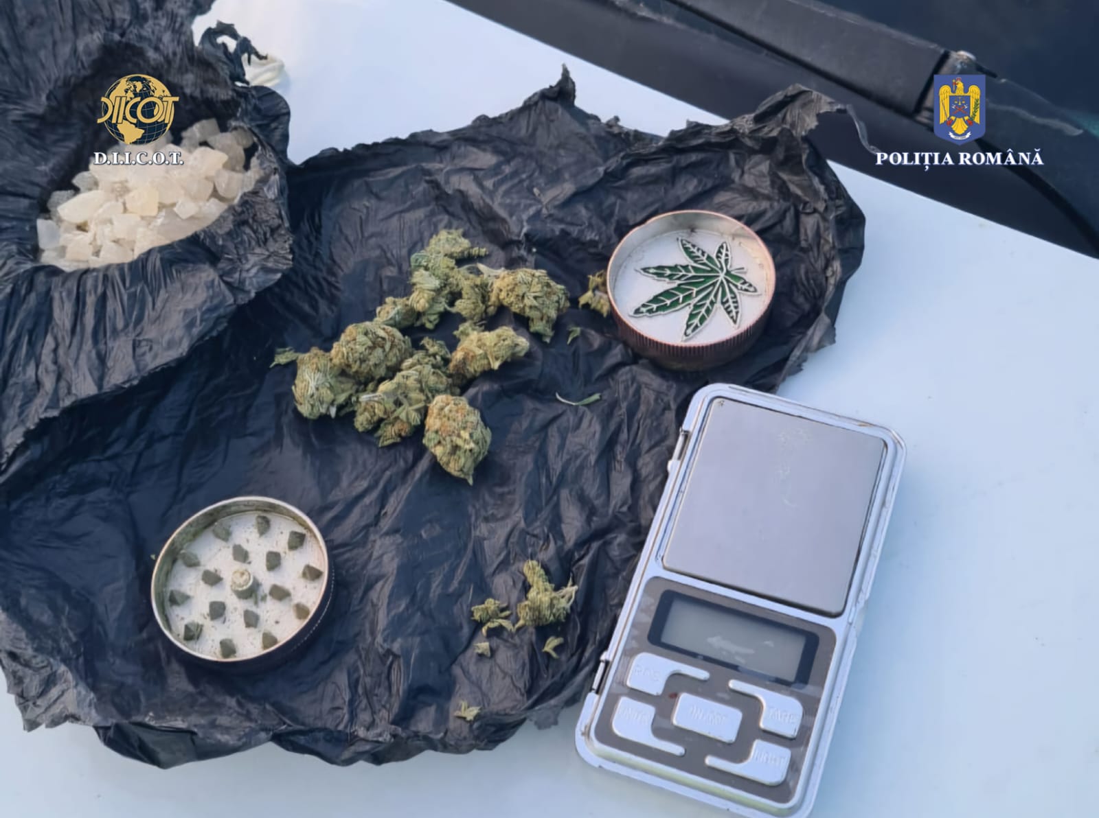 De asemenea, polițiștii rutieri au observat că, din interiorul vehiculului, se simțea un miros înțepător, fapt pentru care au efectuat un control al acestuia, în urma căruia au fost descoperite substanțe susceptibile a face parte din categoria celor interzise, un cântar electronic de mare precizie, precum și un dispozitiv de mărunțit substanță vegetală.