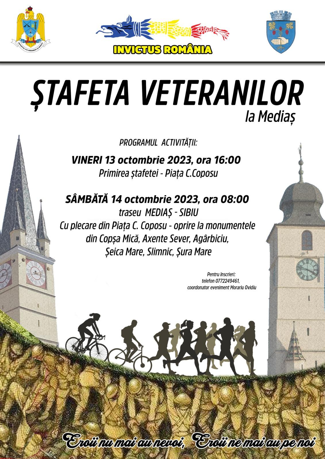 În acest sfârșit de săptămână, municipiul Mediaș va găzdui evenimentul sportiv și caritabil intitulat ,,Ștafeta Veteranilor“, proiect derulat sub egida Invictus România. Manifestarea, aflată la cea de-a zecea ediție națională, se desfășoară pentru al doilea an în municipiul Mediaș.