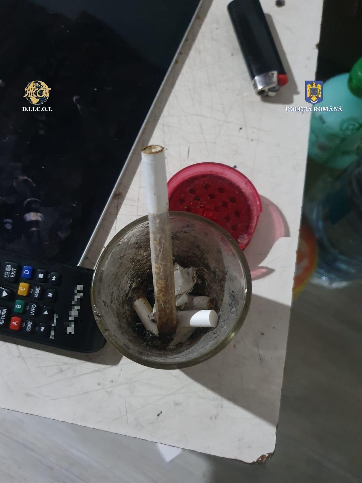 În urma perchezițiilor efectuate, au fost descoperite peste 220 de grame de canabis, precum și alte mijloace de probă.