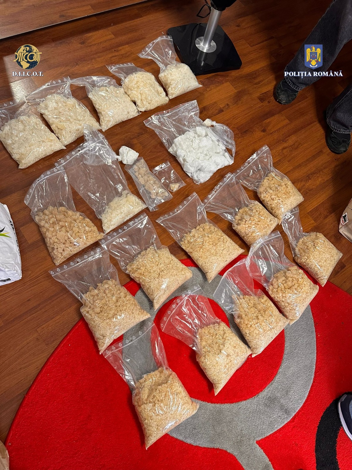 Ulterior, au fost puse în aplicare 2 mandate de percheziție domiciliară, fiind descoperite și ridicate peste 17,5 kilograme de droguri de mare risc și substanțe psihoactive (3-CMC, MDMA, 2-MMC și N-Ethylnorpentedrone), precum și alte mijloace de probă.