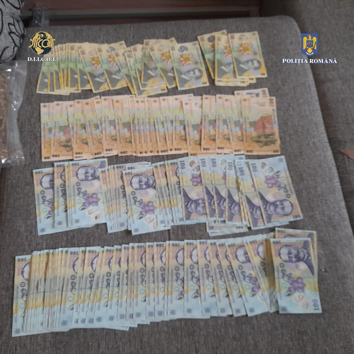 În urma percheziției domiciliare, la locuința bărbatului, au fost descoperite și ridicate aproximativ 200 de grame de canabis, 2 grindere, un loker, un telefon cu cartele SIM, 18.850 de lei, 290 de euro, 30 de lire sterline și 20 de dolari canadieni, despre care există indicii că ar proveni din activitățile de trafic de droguri.