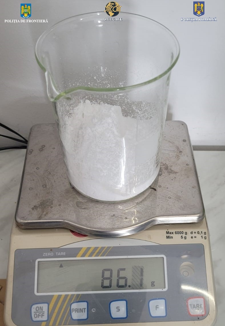 Aceasta a fost prinsă în flagrant delict, în punctul de trecere Sculeni, de către polițiștii de frontieră, în timp ce ar fi intenționat să intre în Republica Moldova, având asupra sa peste 86 de grame de ketamină (drog de risc), destinată comercializării.