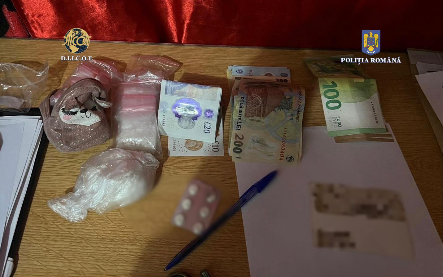 În urma perchezițiilor domiciliare, au fost descoperite și ridicate 150 de grame de cristal (3-CMC, drog de mare risc), 4 grame de canabis, 5 grame de substanță sub formă de pulbere cristalizată, 585 de pliculețe de tip ziplock din material plastic transparent fără conținut, 7 telefoane mobile, un cântar electronic de mare precizie, un grinder, diverse obiecte și plicuri cu urme de substanțe, precum și 450 de euro, 150 de lire sterline și 4.200 de lei.