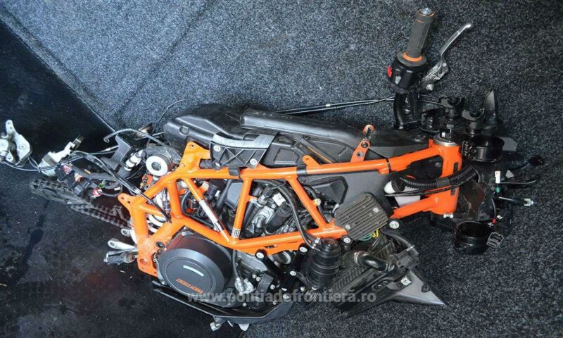 Cele două motociclete marca BMW erau demontate, iar cea de-a treia, marca KTM, a fost descoperită ascunsă într-un spațiu special amenajat, valoare totală a acestora fiind de aproximativ 250.000 lei.