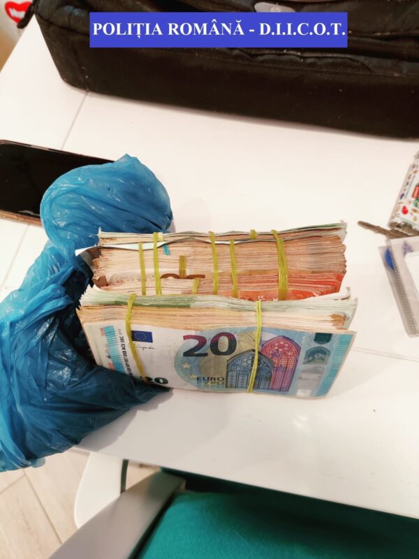 Polițiștii au ridicat, în vederea continuării cercetărilor, peste 105.000 de euro, 20.300 de lei, ceasuri, telefoane, cartele, tablete, un pistol cu glonț, supus autorizării, 34 de fragmente vegetale și alte bunuri.